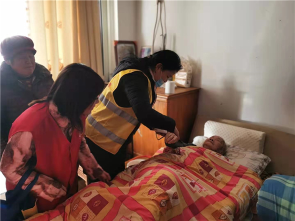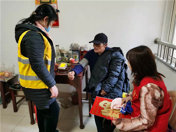 志愿者們先來到了高齡老人王奶奶家,王奶奶今年99歲高齡,與子女同住。志愿者向王奶奶的家人詢問了老人的身體情況和生活情況,叮囑他們注意天氣變化,提前防寒御凍措施。志愿者還為王奶奶測量了血壓,告訴王奶奶有任何需要幫助的地方都可以和社區(qū)反映。隨后,志愿者還走訪了3位老人,為他們測量了血壓,詢問了他們的生活近況,并向他們送上新年祝福。老人很感動,連連道謝:“社區(qū)能記掛著我,大冬天還來看望我,我感到很溫暖。”