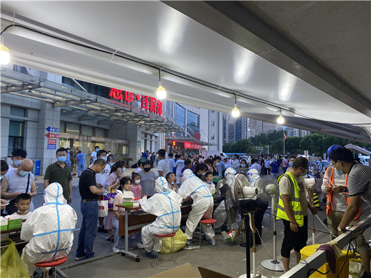 該院自20日啟動(dòng)應(yīng)急響應(yīng)后全院取消休假,醫(yī)務(wù)處、護(hù)理部、設(shè)備科、后勤處等部門積極響應(yīng)、分工合作、快速落實(shí),第一時(shí)間籌備所需的防疫物資,為核酸采集工作提供了堅(jiān)強(qiáng)的保障。為了高效完成采集任務(wù),醫(yī)院采取循環(huán)調(diào)度的模式,700多人次輪番上崗,有些正處于哺乳期、產(chǎn)假的人員,在外學(xué)習(xí)、規(guī)培的人員等等也紛紛克服困難,參加到抗疫一線。炎炎夏日,驕陽似火,為了縮短群眾排隊(duì)時(shí)間,21日當(dāng)天該醫(yī)院本部從一個(gè)采集點(diǎn)兩個(gè)窗口增加至四個(gè)點(diǎn)位幾十組,至22日凌晨一點(diǎn)多共采集10600人次。