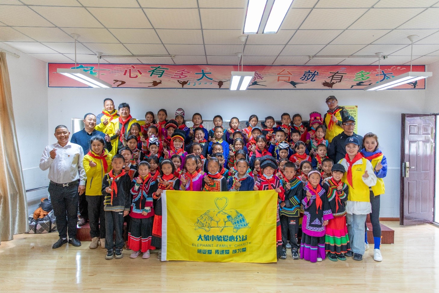 這是在2019年大象小象愛心公益發(fā)起成立五周年之時,與五道箐鎮(zhèn)中心校攜手設(shè)立,象征著長期親密無間公益合作關(guān)系和彼此之間說不完的公益故事。