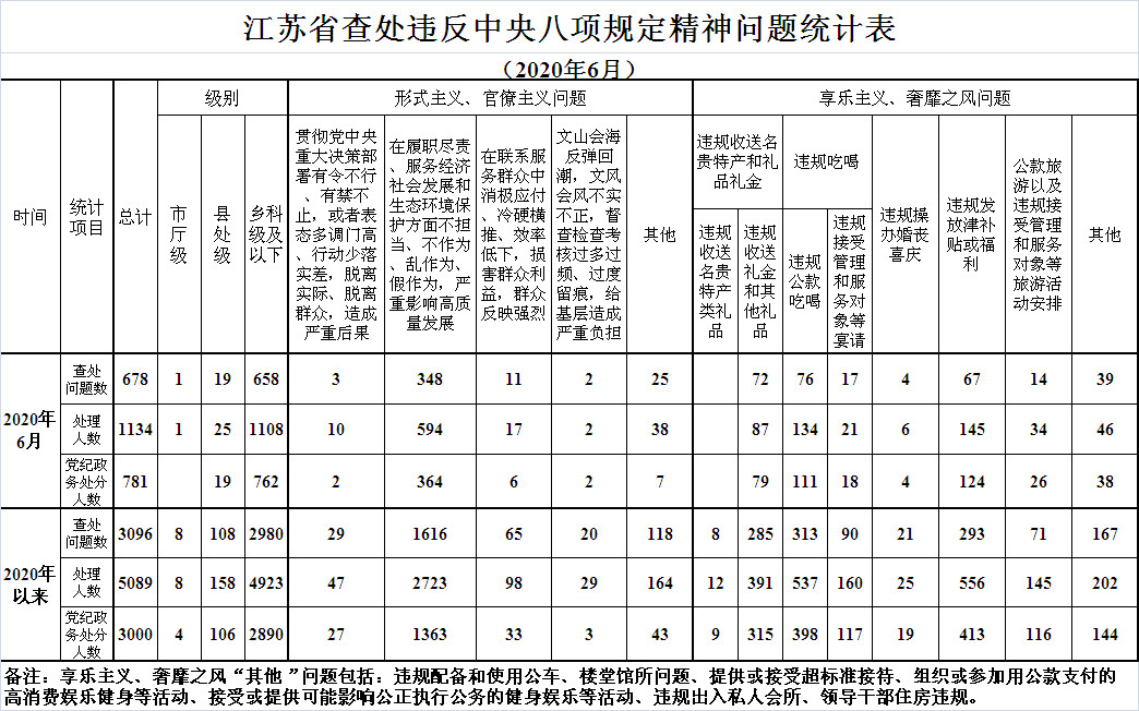 6月江蘇查處違反中央八項(xiàng)規(guī)定精神問(wèn)題6