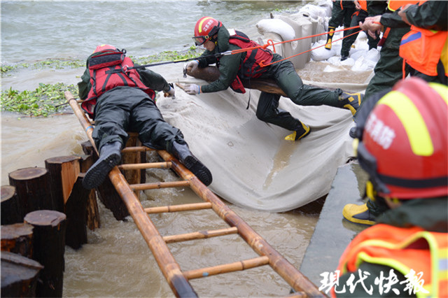 (記者 盧河燕/文 徐洋/攝)7月16日,江蘇省水利廳召開(kāi)防汛工作通氣會(huì)?,F(xiàn)代快報(bào)記者從會(huì)上獲悉,入梅以來(lái),江蘇已發(fā)生9輪強(qiáng)降雨過(guò)程,加上上游大量客水入境,造成沿江蘇南多地河湖庫(kù)超警,汛情嚴(yán)峻。水文專家表示,目前長(zhǎng)江洪峰過(guò)境江蘇,大通流量正緩慢下降,不過(guò)新一輪天文大潮正在來(lái)臨。接下來(lái)要及時(shí)預(yù)警響應(yīng),盯住水庫(kù)、城市防洪、超標(biāo)洪水等重點(diǎn)環(huán)節(jié),加強(qiáng)長(zhǎng)江退水期堤防防守。