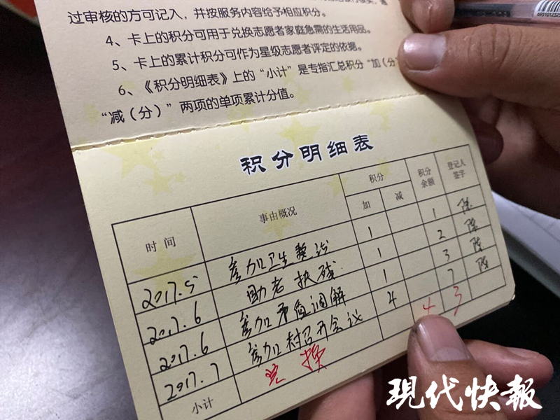 據(jù)介紹,綜治銀行成立于2016年9月,最初因村里矛盾較多,影響到了正常的工作,便通過這一方法營造文明村風(fēng)。綜治銀行實(shí)行志愿者公益積分制度,將志愿者的愛心善舉以“道德資產(chǎn)”的形式進(jìn)行儲蓄,“你做一件好事,我們就給你積1分。”