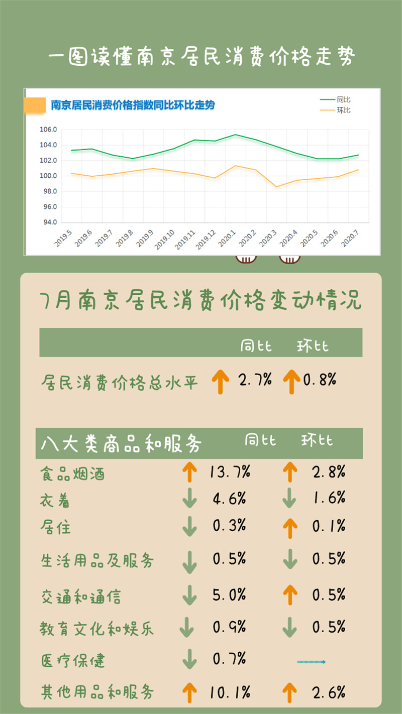 7月份江蘇、南京CPI同比漲幅均為2.7%