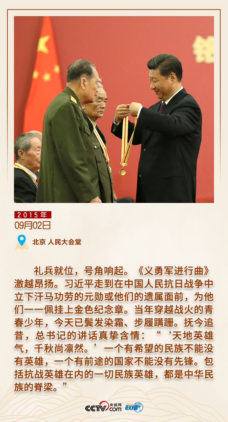 黨的十八大以來,國家通過立法確定了中國人民抗日戰(zhàn)爭勝利紀(jì)念日、烈士紀(jì)念日、南京大屠殺死難者國家公祭日。天安門廣場、人民大會(huì)堂、烈士陵園、抗日戰(zhàn)爭紀(jì)念館……這些鐫刻歷史記憶的地方,處處留下了習(xí)近平總書記緬懷先烈、崇尚英雄的身影和足跡。
