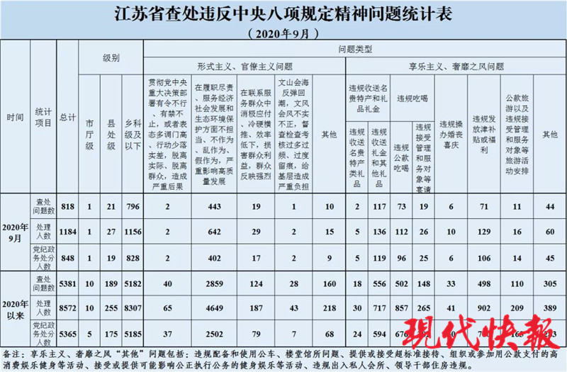 9月江蘇省查處違反中央八項規(guī)定精神問