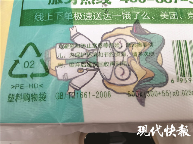當(dāng)天,記者還通過在門店、網(wǎng)絡(luò)平臺(tái)購買等方式,取得了南京4家藥店的塑料購物袋,所獲塑料袋均明示主要材質(zhì)為“PE-HD”,還有“02”的標(biāo)識(shí)。據(jù)了解,PE-HD是指高密度聚乙烯塑料,02是高密度聚乙烯材質(zhì)代號(hào)。這種塑料根據(jù)用途可以制成薄厚不同的食品袋,如果不被污染可以反復(fù)使用,節(jié)約資源。不過這也意味著,在記者當(dāng)天的調(diào)查范圍內(nèi),所有的書店和藥店使用的仍是不可降解塑料袋。