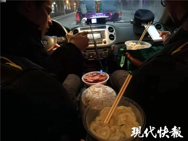 同一班崗,同一輛車(chē),不同的是年夜飯,相同是堅(jiān)守平安南京的決心。揮手告別了團(tuán)圓的親友,他們迎戰(zhàn)寒風(fēng),執(zhí)勤守衛(wèi),巡邏站崗,穿梭于城市的大街小巷,路過(guò)無(wú)數(shù)個(gè)洋溢歡笑的窗口。璀璨的霓虹燈照亮他們頭頂?shù)木蘸蛨?jiān)毅勇敢的臉龐。這一刻他們堅(jiān)守崗位,他們是南京特警。