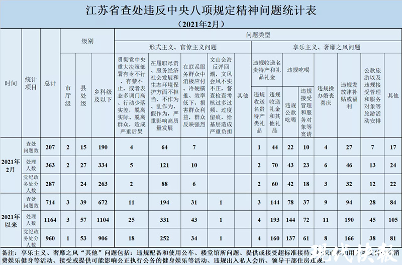 2月江蘇查處違反中央八項(xiàng)規(guī)定精神問(wèn)題2