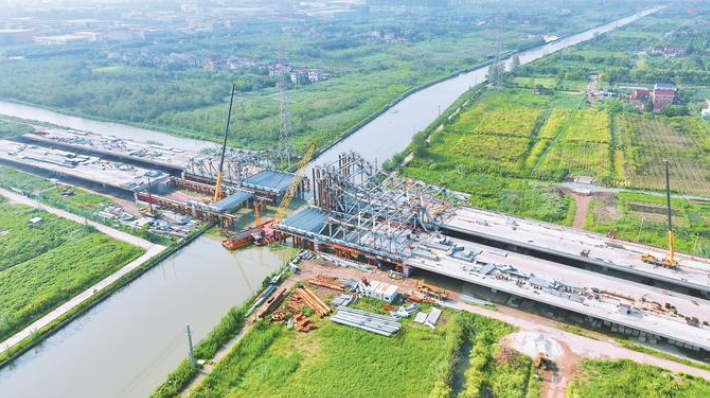 7日上午,G345國道啟東頭興港大橋施工現場正在安裝鋼構件。頭興港大橋工程于2020年4月開工建設,主體預計年內完成,明年4月完成全部施工項目。G345國道全長超過3000公里,是國家東西方向主干國道,起點為江蘇啟東