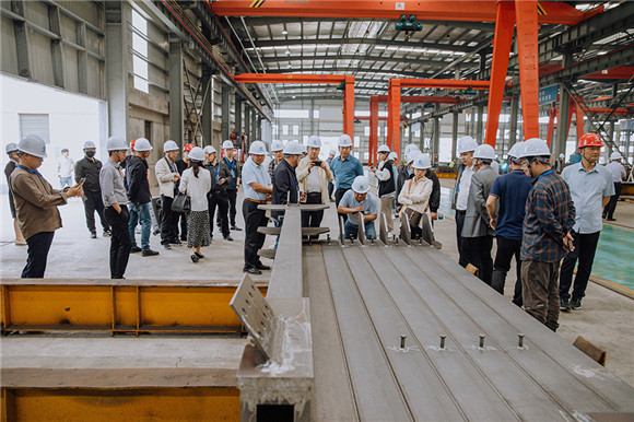 在觀摩環(huán)節(jié),與會(huì)嘉賓還前往參觀了江蘇江海杭蕭鋼結(jié)構(gòu)裝配式生產(chǎn)基地,在相關(guān)負(fù)責(zé)人的詳細(xì)介紹中全方位了解車間全自動(dòng)智能化的生產(chǎn)設(shè)備和鋼結(jié)構(gòu)構(gòu)件的生產(chǎn)過程。完成走訪后,到場嘉賓一致認(rèn)為,鋼結(jié)構(gòu)裝配式建筑有著其它建筑類型不可比擬的優(yōu)勢,江蘇江海杭蕭不僅在技術(shù)上有創(chuàng)新,在鋼結(jié)構(gòu)加工質(zhì)量上也具有較強(qiáng)競爭力。