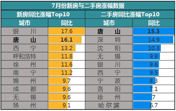 銀川、唐山、成都、沈陽均多次上榜全國新房、二手房房價(jià)環(huán)比漲幅排行前十。