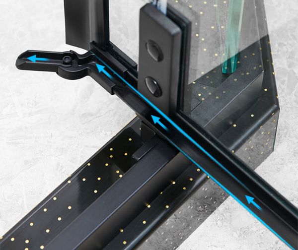 門下回流式導(dǎo)水槽,干濕分離不漏水,即使在門沒(méi)有完全閉合的情況下依然能阻擋水流外滲。