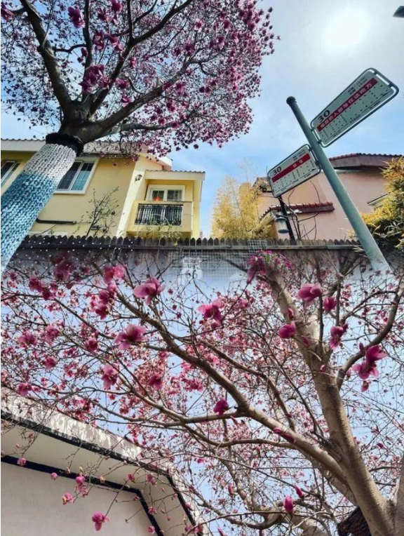 走近她家的小院,第一眼看到的肯定是院子里的一棵紫玉蘭,滿樹的花朵,帶著清香,非常的吸睛,而樹干上還特意地穿上了毛衣,這是一種生活的任性?紫玉蘭樹的下面吊著一個(gè)吊椅,這個(gè)院子就充滿了不一樣的色彩,讓人感覺到輕松愜意。