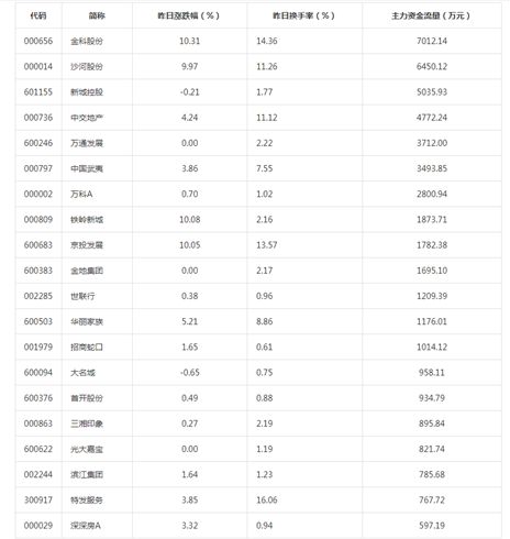 房地產(chǎn)行業(yè)資金流入榜