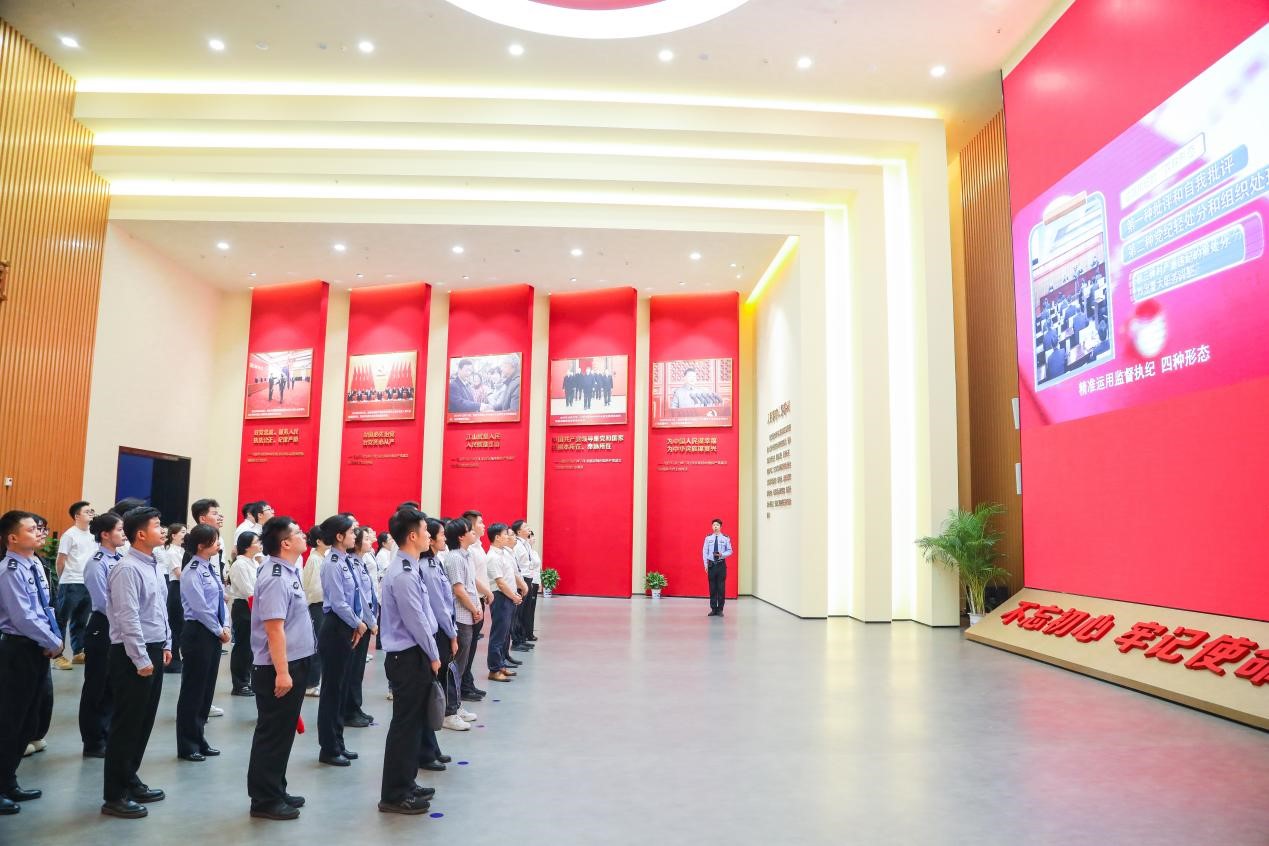 研學第一站,青年民警走進橫山新四軍革命紀念館,通過聆聽講解員講述英雄事跡,重溫紅色歷史、沐浴紅色革命洗禮。接著,大家參觀了中國船舶集團第八研究院展廳,在我國國防科技成果中更加堅定了文化自信,以學增智,強化本領提升。之后,青年民警來到江寧監(jiān)獄內的省級機關黨風廉政教育基地,基地內“兩面人塑像”“懺悔錄”“三筆賬”等多個板塊引起青年們的關注,大家紛紛表示要自覺做到心有所畏、言有所戒、行有所止,堅決筑牢拒腐防變思想防線。最后一站,青年民警們參觀了南京女子監(jiān)獄黨業(yè)融合、黨團共建成果。在座談分享會現場,大家結合自身工作實際深入交流一天的研學收獲與感悟,現場氛圍熱烈。