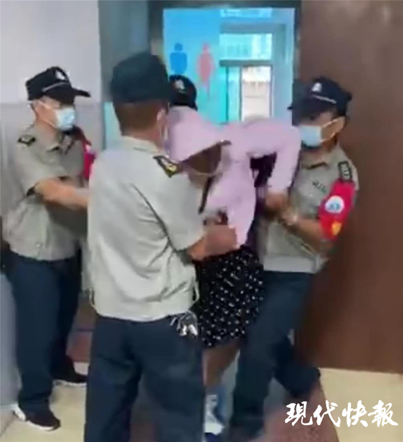 7月13日上午11時(shí)許,海州公安分局洪門派出所接到報(bào)警,連云港市第二人民醫(yī)院西院區(qū)大廳,有人偷東西。值班民警帶人趕到現(xiàn)場(chǎng)后,發(fā)現(xiàn)一個(gè)頭戴粉紅色帽子、上身著粉紅色外套、下身穿黑色帶白點(diǎn)花裙、穿著肉色絲襪和白色女式鞋子的“孕婦”被一群人圍控在中間,并不時(shí)招來謾罵之聲。