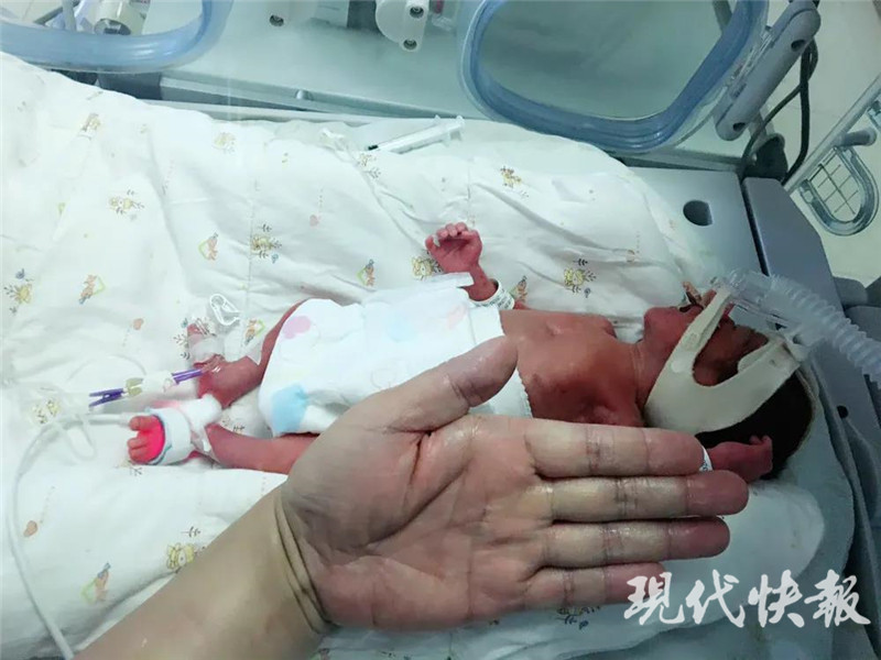 6月9日夜間,揚(yáng)州市婦幼保健院新生兒科病房接到電話:“快!產(chǎn)房一個(gè)懷孕26+6周的產(chǎn)婦即將分娩!”值班醫(yī)生劉偉偉迅速趕到產(chǎn)房,不一會(huì),該產(chǎn)婦娩出一男嬰。出生時(shí)的小寶寶全身皮膚薄嫩,呈現(xiàn)膠凍狀,血管清晰可見,身長(zhǎng)僅33cm,頭圍21cm,體重僅有890g,自主呼吸微弱,皮膚青紫,并出現(xiàn)輕度窒息。劉偉偉立刻進(jìn)行窒息復(fù)蘇,很快小寶寶自主呼吸恢復(fù),皮膚轉(zhuǎn)紅,復(fù)蘇成功。此時(shí),新生兒科病房里,護(hù)理人員已經(jīng)準(zhǔn)備好了高級(jí)暖箱,調(diào)好了箱溫和濕度,監(jiān)護(hù)單元的各項(xiàng)設(shè)備都已就位,隨時(shí)迎接小寶寶的到來。