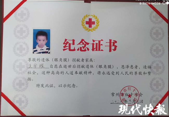 2020年7月12日,王宇煊永遠(yuǎn)地離開了這個(gè)世界,離開了悉心照顧他十多年的爺爺奶奶。這一天,他捐出了自己的眼角膜,在常州市紅十字會(huì)的幫助下,一名飽受失明之苦的陌生人接受了這份愛(ài)的饋贈(zèng),重見(jiàn)了光明。