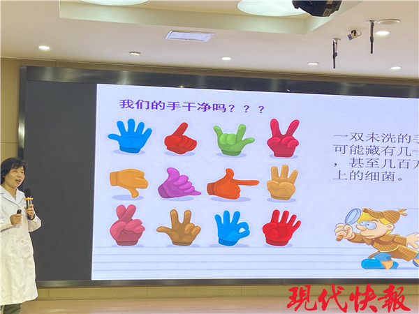 在活動現(xiàn)場,省人民醫(yī)院感染管理處張翔醫(yī)生向?qū)W生們傳授“七步洗手法”,并邀請學生上臺進行仔細指導。省疾控中心消毒與病媒生物防制所副所長談智帶來“科學洗手 遠離傳染病”的健康小講座,教育同學們通過正確洗手,有效避免感染疾病。為了讓同學們牢記科學洗手步驟,現(xiàn)場表演了省人民醫(yī)院專家編制的“快閃洗手舞”?;顒拥玫綄W生們的積極響應和參與,現(xiàn)場氛圍熱烈。