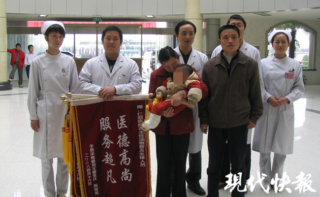 △2008年手術(shù)很成功,小寶一家給醫(yī)院送了錦旗