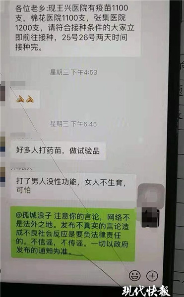 (通訊員 文松 記者 李子璇)近日,淮安市淮陰區(qū)社區(qū)工作人員在微信群里宣傳引導(dǎo)當?shù)鼐用窠臃N新冠疫苗,并提供3家醫(yī)院供市民前往接種。群內(nèi)一男子發(fā)布有關(guān)疫苗的不實言論稱,男人接種疫苗后喪失性功能,女人接種后不生育。該不實言論迅速在網(wǎng)絡(luò)上瘋傳,造成不良影響。
