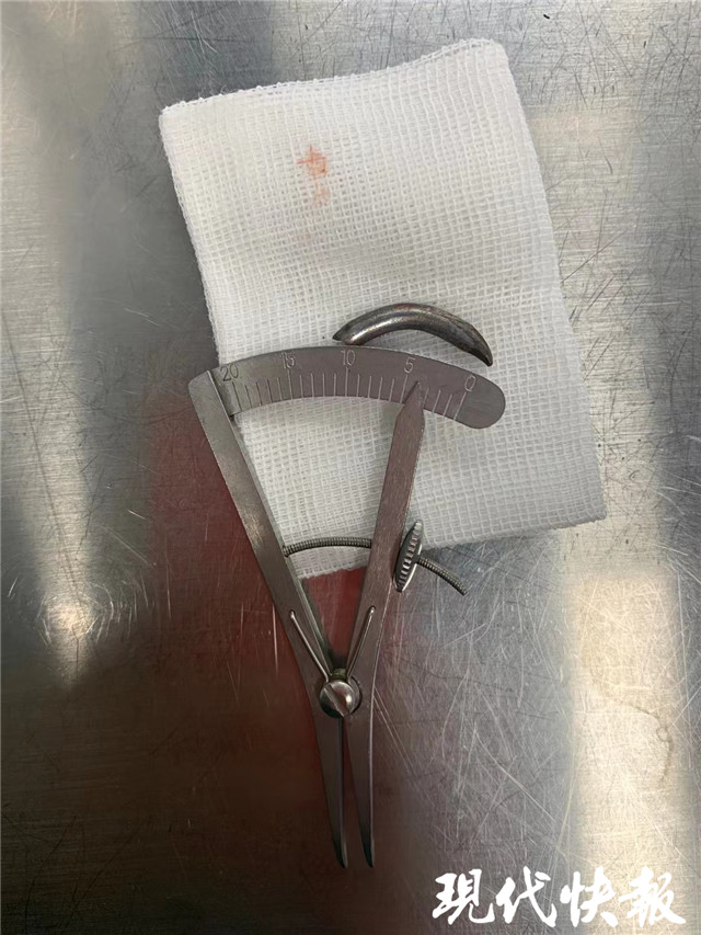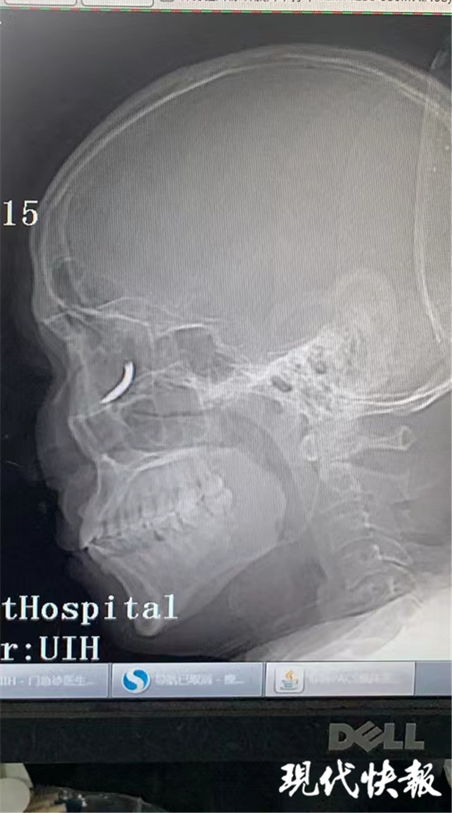 “當(dāng)時(shí)在敲鐵釘,感覺什么東西進(jìn)眼睛里了,但沒影響視力,還以為是水泥灰之類的。”三天前,王師傅眼中進(jìn)入異物,感覺頭暈不適后,去當(dāng)?shù)蒯t(yī)院就診,拍了X光片后,竟然發(fā)現(xiàn)自己眼眶內(nèi)有一個鐵釘樣的異物。