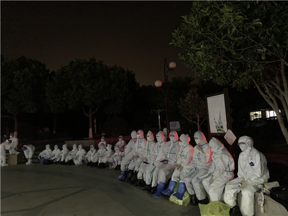 00:30,我們正式開始工作,直到05:30,支援我們的隊伍到來,才得以休息。大家都躺在地上不愿起來,有點隊員連脫掉防護服的力氣都沒有。從看到繁星點點,到聽到雄雞報曉,這一夜十分漫長。