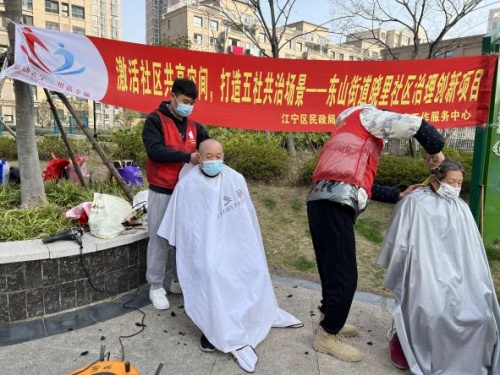 義剪活動中,社區(qū)工作人員引領(lǐng)居民們排隊(duì)就座并熱情地詢問接居民理發(fā)的需求,精心設(shè)計修剪發(fā)型。義剪志愿者們技藝嫻熟,一邊為居民剪發(fā),一邊與他們親切交談,讓這暖暖的春日更添幾分祥樂。