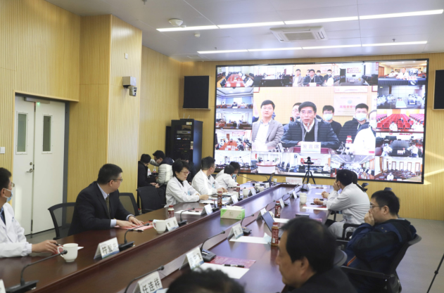居蓉副院長、醫(yī)務(wù)處、科教處、文化發(fā)展處、呼吸與危重癥醫(yī)學(xué)科、體檢科相關(guān)負責(zé)人參加會議,江寧區(qū)23家社區(qū)衛(wèi)生服務(wù)中心主任視頻連線參會,居蓉副院長主持會議。
