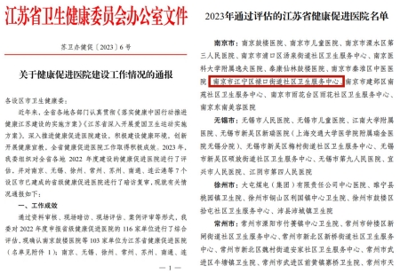健康江蘇惠百姓——祿口社區(qū)醫(yī)院榮獲“江蘇省健康促進醫(yī)院”