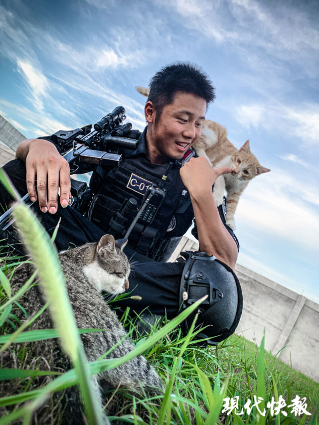 (通訊員 南特宣 記者 顧元森)烈日下,特警隊(duì)員趴在地上練習(xí)射擊,兩只小貓則在隊(duì)員身邊嬉戲……在南京市公安局特警支隊(duì)訓(xùn)練基地,兩只小貓成了特警隊(duì)員們的新伙伴。原來,這兩名小貓都是特警隊(duì)員們救助回來的流浪貓,小家伙把訓(xùn)練基地當(dāng)成了自己的家。