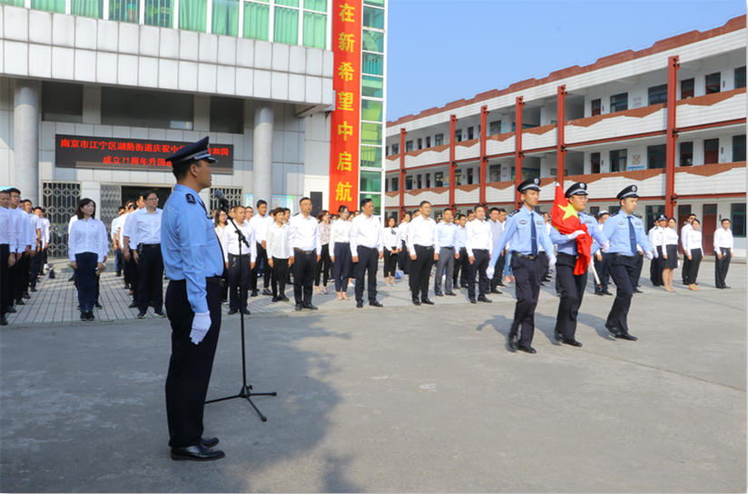 為慶祝中華人民共和國成立71周年,進一步加強愛國教育,10月1日,江寧區(qū)湖熟街道新時代文明實踐所在湖熟小學(xué)舉行升旗儀式,以此表達濃濃的愛國情和深深的民族自豪感。街道黨政領(lǐng)導(dǎo)、機關(guān)部門、各村(社區(qū))兩委干部、執(zhí)法大隊、公安干警、河南社區(qū)群眾代表參加了這次升國旗儀式。