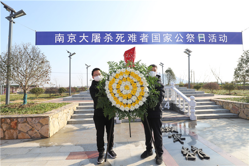 12月13日,山河肅穆,草木含悲。為緬懷在中國人民抗日戰(zhàn)爭中英勇獻身的英烈和所有為中國人民抗日戰(zhàn)爭勝利做出貢獻的人們,悼念南京大屠殺死難者和所有在日本帝國主義侵華戰(zhàn)爭期間慘遭殺戮的死難同胞,江寧區(qū)湖熟街道全國第八個“國家公祭日”紀念活動在丹桂村赤山烽火廣場舉行。