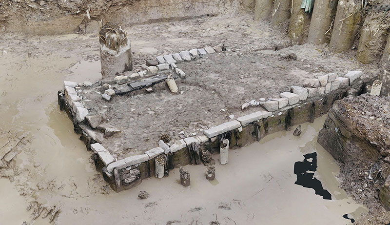 浙江溫州古港遺址水門頭發(fā)掘區(qū)(國家文物局供圖)。