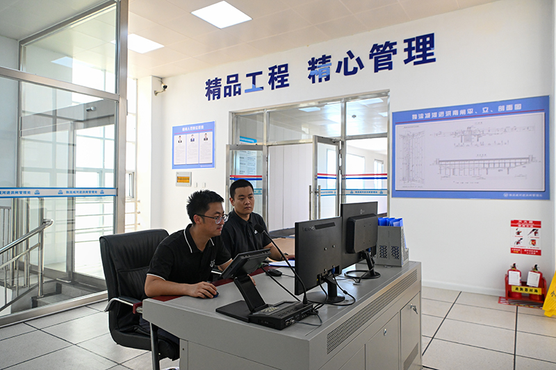 8月2日,工作人員在天津獨流減河進洪南閘值班室內(nèi)值班。新華社記者 孫凡越 攝