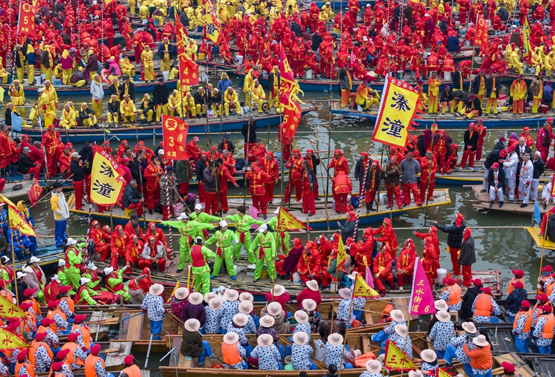 當(dāng)日,2024年泰州姜堰溱潼會(huì)船在江蘇省泰州市姜堰區(qū)溱湖國(guó)家濕地公園開幕,數(shù)百條各式各樣的船只和上萬(wàn)名會(huì)船選手云集溱湖,飛篙走槳,奮勇爭(zhēng)先,呈現(xiàn)“千篙萬(wàn)槳鬧溱湖 百舸爭(zhēng)流逐春潮”的壯觀場(chǎng)景,演繹歷久彌新的民俗畫卷。溱潼會(huì)船由南宋相沿至今,歷經(jīng)數(shù)百年傳承,被列入國(guó)家級(jí)非物質(zhì)文化遺產(chǎn)名錄。