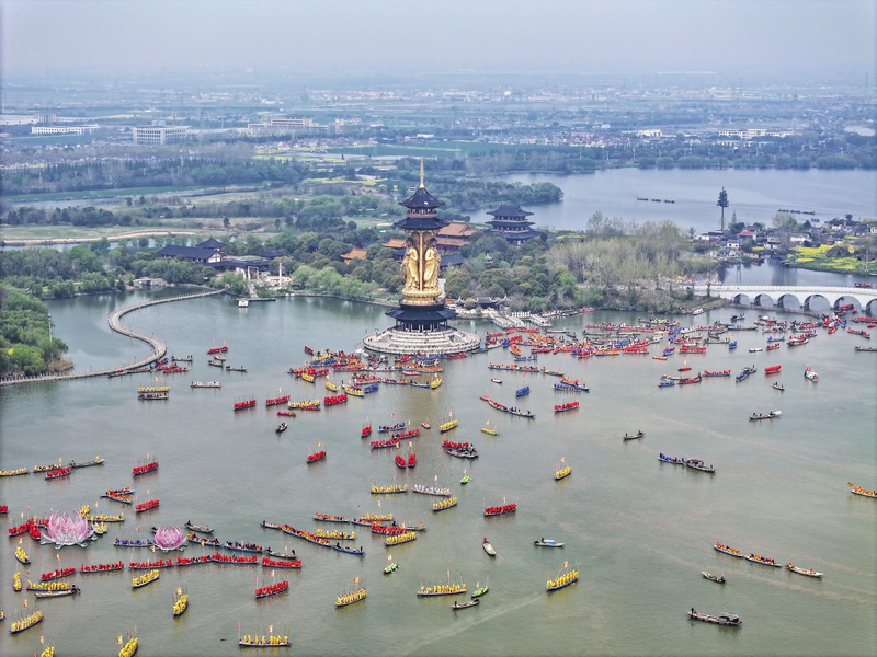 4月6日拍攝的溱潼會(huì)船現(xiàn)場(chǎng)(無(wú)人機(jī)照片)。新華社發(fā)(顧繼紅?攝)