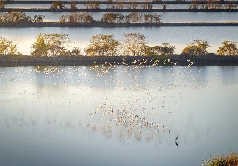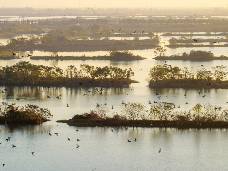 近日,大批候鳥飛抵江蘇省興化里下河國家濕地公園,它們成群結(jié)隊(duì)在淺灘覓食、休憩,成為冬日里一道美麗的風(fēng)景線。
