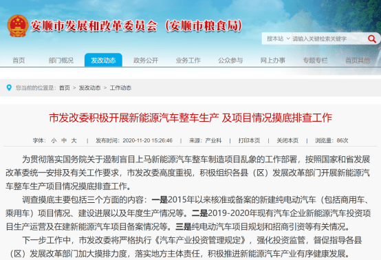 安順發(fā)改委指出,調(diào)查摸底主要包括三個(gè)方面的內(nèi)容:一是2015年以來核準(zhǔn)或備案的新建純電動汽車(包括商用車、乘用車)項(xiàng)目情況、建設(shè)進(jìn)展以及年度生產(chǎn)情況等。二是2019-2020年現(xiàn)有汽車企業(yè)新能源汽車投資項(xiàng)目生產(chǎn)運(yùn)營及在建新能源汽車項(xiàng)目備案情況等。三是純電動汽車項(xiàng)目規(guī)劃和招商引資等有關(guān)情況。