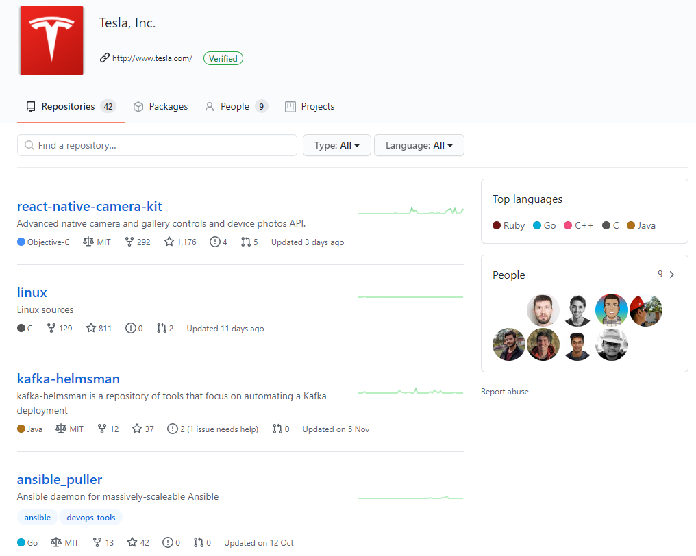 特斯拉在GitHub上的官方賬號(hào)