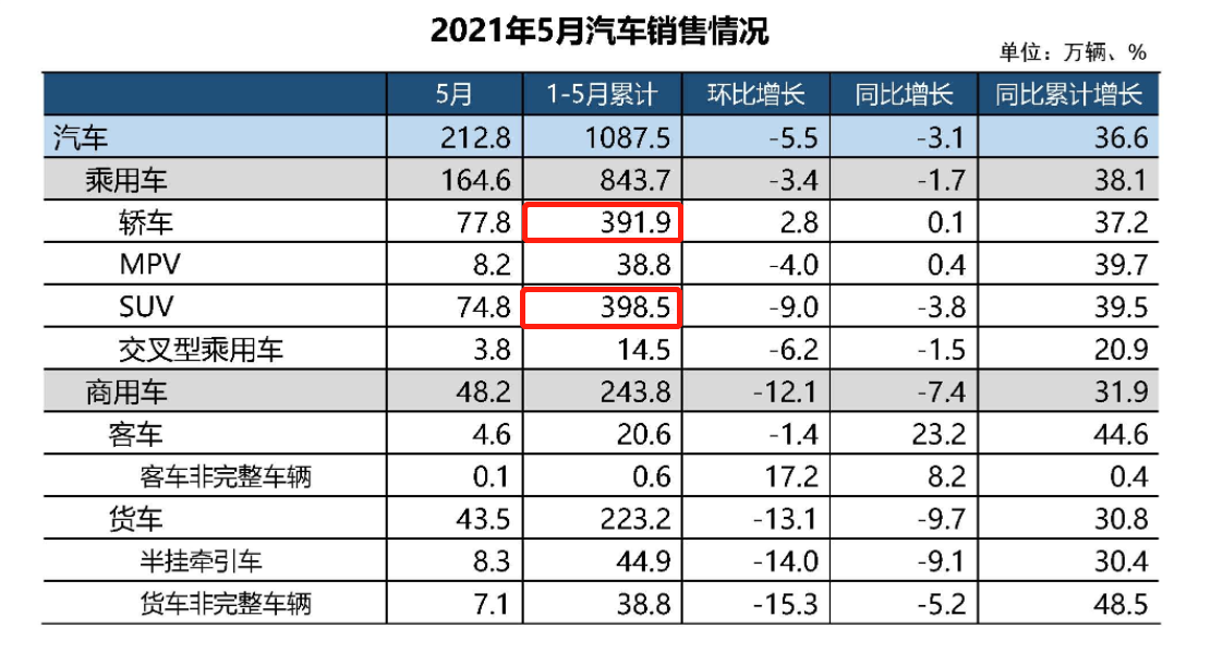 近日,中汽協(xié)發(fā)布信息,根據(jù)統(tǒng)計重點企業(yè)旬報情況預(yù)估,今年6月國內(nèi)汽車預(yù)計完成銷量192.6萬輛,預(yù)計今年上半年累計完成銷量1280.1萬輛。而此前今年1-5月中汽協(xié)數(shù)據(jù)顯示,SUV累計銷售398.5萬輛,可以說在細分市場上,SUV市場依然熱度不減。