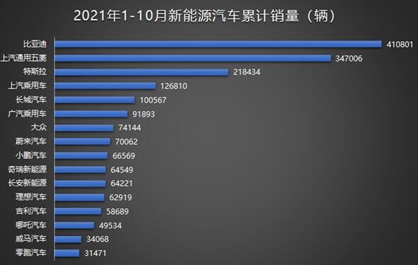 比亞迪一騎絕塵:1-10月份新能源乘用車品牌銷量公布