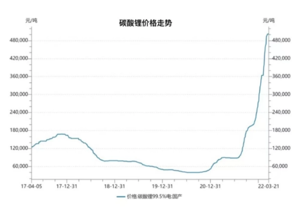 從各大車企發(fā)布的漲價聲明中可以發(fā)現(xiàn),原材料價格上漲傳導(dǎo)至整車是主要原因。新能源汽車各部件對原材料依賴性較強,動力電池是新能源汽車的核心部件,而動力電池的關(guān)鍵原材料碳酸鋰去年以來價格一路高漲,其中碳酸鋰價格從去年初的6.8萬元/噸持續(xù)上漲到如今的約50萬元/噸,目前還呈現(xiàn)上漲趨勢。原材料大漲價,促使車企的造車成本短期內(nèi)難以降下來,繼而形成普遍漲價的市場局面。正因如此,榮威新能源“4月不漲價”這一舉措顯得更加可貴,不愧是被網(wǎng)友譽為“良心車企”。