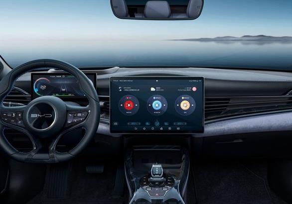 海豹內(nèi)飾同樣采用 “海洋美學(xué)”設(shè)計(jì)理念,采用了灰藍(lán)+黑的撞色設(shè)計(jì),設(shè)計(jì)以海洋為主線,儀表臺(tái)上部的起伏形態(tài)如同涌起的海浪,鋁金屬色的裝飾條烘托了海豹的運(yùn)動(dòng)感與年輕屬性。液晶數(shù)字式儀表和自適應(yīng)旋轉(zhuǎn)懸浮Pad則是比亞迪的標(biāo)志性設(shè)計(jì)。作為儀表臺(tái)的視覺核心,平直延展的裝飾線條拉伸了車內(nèi)的橫向視覺寬度。
