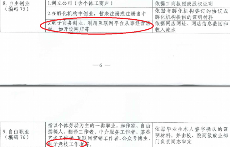 南都記者發(fā)現(xiàn),新的高校畢業(yè)生就業(yè)統(tǒng)計(jì)相關(guān)指標(biāo)的最大不同點(diǎn)在于“自主創(chuàng)業(yè)”和“自由職業(yè)”方面,自主創(chuàng)業(yè)的范圍加入了開(kāi)設(shè)網(wǎng)店,自由職業(yè)的范圍加入了互聯(lián)網(wǎng)營(yíng)銷(xiāo)工作者、公眾號(hào)博主、電子競(jìng)技工作者。
