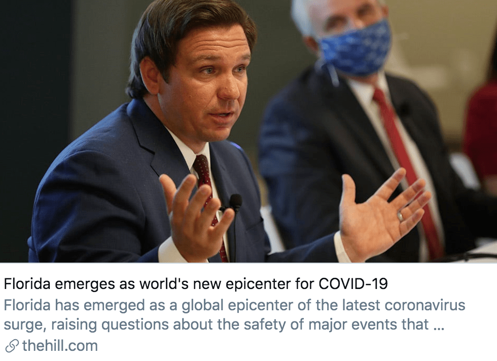 佛羅里達(dá)州成為全球疫情又一個(gè)“震中”。/ 《國(guó)會(huì)山報(bào)》報(bào)道截圖