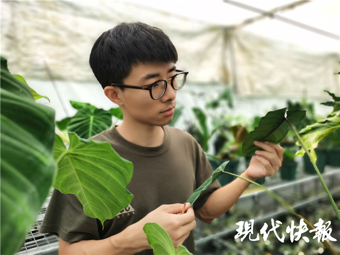 1993年出生的他是南京高淳人,從南京林業(yè)大學畢業(yè)后兩年,他選擇了辭職創(chuàng)業(yè)。“不太喜歡按部就班的工作,但還是想做與植物相關的事。”2018年6月,他成立了工作室,主要從事植物場景布置。在這期間,他接觸到了各種各樣的植物,其中有些熱帶植物一下子吸引了他。“這類植物多是觀葉植物,葉片較大,耀眼也有張力,和其他植物放在一起,一眼就能被注意到。”