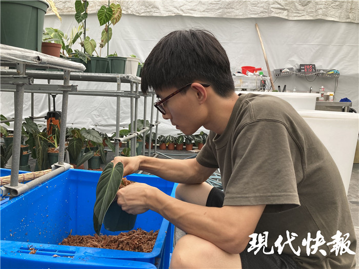 (記者 于露 白雪銀 文/攝)火鶴后、鹿角蕨、云母蔓綠絨……走進孔霄鵬的植物基地,一排排花架上的綠色葉片恣意舒展,如同一所小型的植物園,孔霄鵬幾乎每天都待在這里打理植物。大學畢業(yè)兩年后,他在一些國內(nèi)較為罕見的熱帶植物品種里看到了商機,于是辭職創(chuàng)業(yè)。每日與植物相伴,讓他感覺舒適又自由,接下來他還想打造品牌,讓他的產(chǎn)品以多樣的方式走進大家的日常生活。