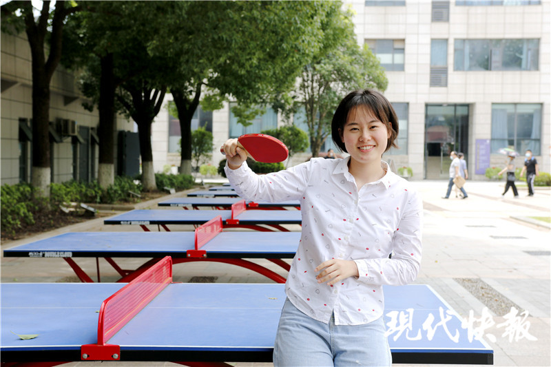 走到臺(tái)下,18歲的楊程被家長(zhǎng)們團(tuán)團(tuán)圍住,變身“招生官”。當(dāng)聽說她不上輔導(dǎo)班,眼睛也只是稍有些近視,家長(zhǎng)們都覺得不可思議。“其實(shí)不上輔導(dǎo)班,可以有自己的時(shí)間去有針對(duì)性的學(xué)習(xí)。”楊程自有自己的學(xué)習(xí)節(jié)奏。為什么眼睛那么好?那是因?yàn)闂畛堂刻於紙?jiān)持運(yùn)動(dòng) ,特別是乒乓球有臺(tái)子就要打一陣子。校園里那個(gè)一手夾著小說,一手夾著乒乓球拍的女生,就是楊程。