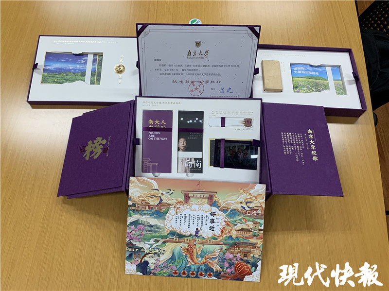 典雅的紫色禮盒、文藝的《好事近》詩(shī)句、金邊玫瑰為紀(jì)念品...... 前段時(shí)間,南京大學(xué)“神仙錄取通知書(shū)”火了。除了樣式精美,今年南大招辦與創(chuàng)新創(chuàng)業(yè)與成果轉(zhuǎn)化辦公室合作,開(kāi)啟“鮮花帶貨”,為美麗云南帶貨,引來(lái)一大撥網(wǎng)友圍觀打call。“之前就在網(wǎng)上看到,說(shuō)南大錄取通知書(shū)是個(gè)禮盒,里面東西非常豐富,雖然知道這些,但今天現(xiàn)場(chǎng)看到那一刻,還是覺(jué)得很開(kāi)心很激動(dòng)!”周琳琦說(shuō)。